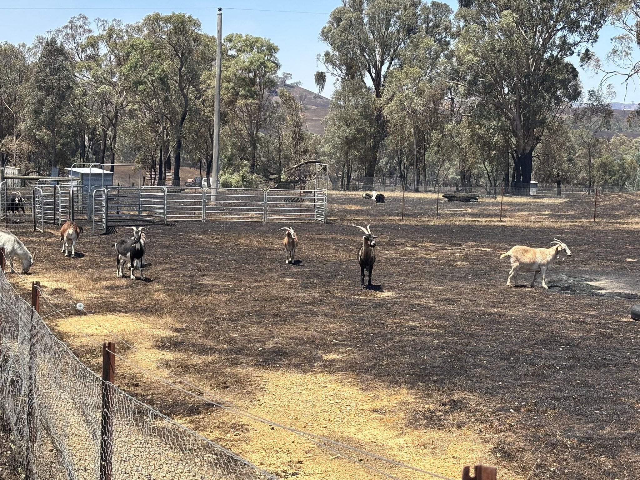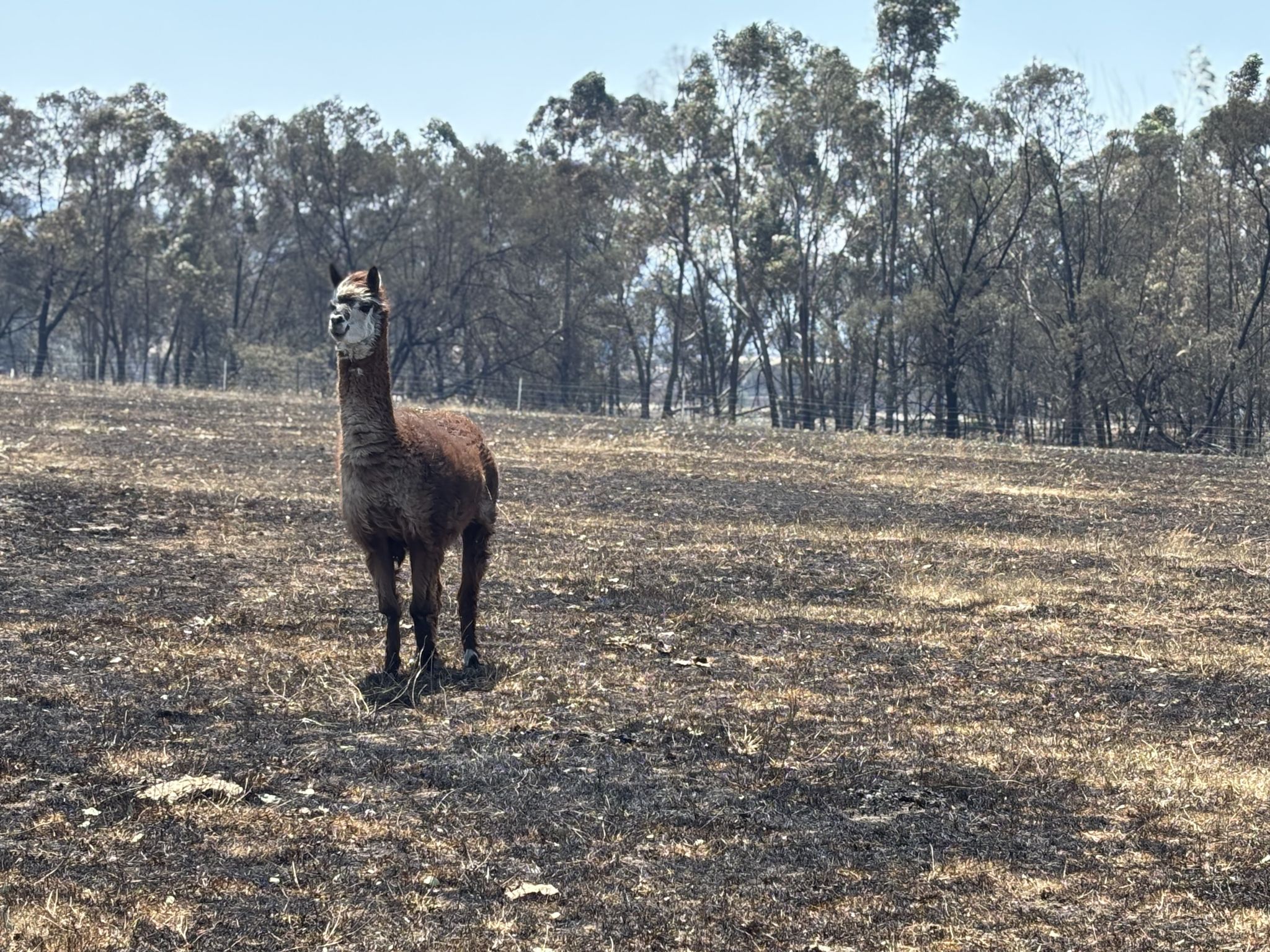 The animals are now adjusting to life after the fire. With large areas of the property no longer usable, many residents are sharing spaces for the first time. While this has come with some strong opinions from those used to having their own paddocks, everyone is calm, safe, and having their basic needs met — food, water, shelter, and care.